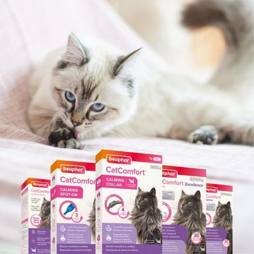 It is especially beneficial when there are changes in the cat’s environment, such as moving house, a new member of the family, building work or even moving furniture. The pheromones used are a copy of feline pheromones that provide a continuous and reassuring message to cats, promoting feelings of harmony and marking areas and objects or people as safe. It can be very favourable when introducing a new cat into the home, helping them to adapt to their new routine and to other members of the family. Beaphar CatComfort® will not affect other animals in the household or sedate your cat and can be used in conjunction with any medication your cat may be taking.