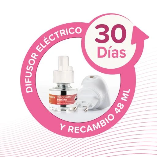Clinical studies show that the pheromones used in Beaphar CatComfort® help in stressful situations and prevent unwanted behaviour. The use of pheromones recognised by cats calms them down and prevents unwanted behaviours such as vertical scratching, continuous meowing, urine marking and general anxiety. In other words, it helps to solve all the frequent signs of stress that your cat may show, thus ensuring that your cat feels comfortable and calm in your home. In addition, thanks to an advanced combination of pheromones, Bepahar CatComfort Excellence reduces conflict and fighting between cats, promoting harmony and calm in the home.