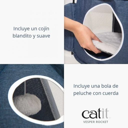 The Vesper Rocket Catit folding shelter is a folding hideaway and toy for cats, with an innovative space rocket design. It is the ultimate in Vesper furniture, includes a padded cushion, a ball hanging from a rope for them to play with, the high quality anti-scratch fabric does not retain hair.