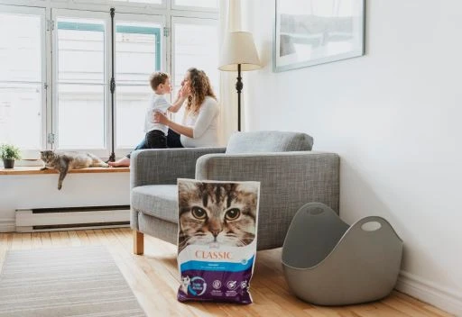 Intersand Classic clumping litter, with its patented and exclusive triple action formula, eliminates unpleasant odors even more effectively.