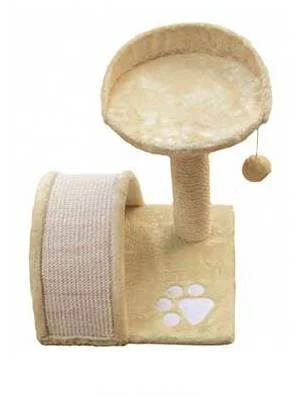 Compact scraper for cats with a very thin velvety touch. It contains a base, a stick made of sisal, and fluffy plush ledge where the cat can stretch and rest. It allows sharpening her nails into two positions.