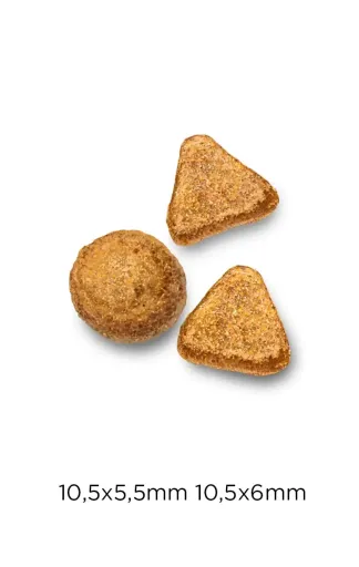 Fresh chicken (40 %), corn, dehydrated poultry meat (30%), rice (15%), corn gluten, chicken oil, yeast, rice protein, hydrolysed chicken liver 5%, beetroot pulp, fish oil, fish, dehydrated whole egg, salt, sodium polyphosphates, inuline (source of fructo-oligosaccharides) (0.1 %), mannanooligosaccharides (0.1 %), bioflavonoid-rich citrus extracts, potassium chloride, cassava extract, glucosamine, chondroitin.