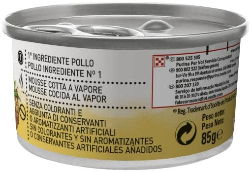 Beyond (R) Grain Free Recipe offers you a wide selection of cat foods to help support your cat’s health with the same great nutrition you’ve come to expect from us. By going beyond grains, we’re expanding our cat food offering by giving you an alternative combination to choose from that’s best for your feline. This grain-free recipe has recognisable ingredients you trust, providing your cat with high quality protein. Complete wet food for adult cats with Selected Natural Ingredients and Grain Free Grain Free with Selected Natural Ingredients Chicken is the No. 1 ingredient NO added artificial colours, flavourings or preservatives NO added gluten Chicken (24%), Pork ?, Turkey ?, Dehydrated Pork Protein, Minerals, Green Beans (1.1% dehydrated green beans, equivalent to 9.9% green beans), Natural Ingredients. Nutritional additives: IU/kg: Vit A: 920; Vit D3: 128; mg/kg: Ferrous sulphate monohydrate: 34; Calcium iodate anhydrous: 0.50; Cupric sulphate pentahydrate: 3.3; Manganous sulphate monohydrate: 4. Analytical constituents: Moisture: 80%, Crude protein: 9.5%, Crude oils and fats: 6.7%, Crude ash: 2.3%, Crude fibres: 0.3%. Directions for use and recommended daily ration: For an average adult cat (4kg) serve 3 cans per day in at least 2 separate meals. The average adult maintenance rations are based on moderately active cats in normal environmental conditions. Individual needs vary and the amount of food should be adjusted accordingly to keep your cat at a lean, healthy body weight. Always provide clean, fresh water.
