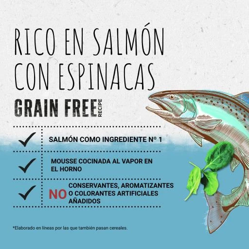 Beyond (R) Grain Free Recipe offers you a wide selection of cat foods to help support your cat’s health with the same great nutrition you’ve come to expect from us. By going beyond grains, we’re expanding our cat food offering by giving you an alternative combination to choose from that’s best for your feline. This grain-free recipe has recognisable ingredients you trust, providing your cat with high quality protein. Complete wet food for adult cats with Selected Natural Ingredients and Grain Free Grain Free with Selected Natural Ingredients Salmon is the No. 1 ingredient NO added artificial colours, flavours or preservatives NO added gluten NO added Salmon (16%), Pork ?, Chicken ?, Turkey ?, Dehydrated Pork Protein, Minerals, Spinach (0.45% dehydrated spinach, equivalent to 4% spinach), Natural ingredients. Nutritional additives: IU/kg: Vit A: 920; Vit D3: 128; mg/kg: Ferrous sulphate monohydrate: 34; Calcium iodate anhydrous: 0.50; Cupric sulphate pentahydrate: 3.3; Manganous sulphate monohydrate: 4. Analytical constituents: Moisture: 80%, Crude protein: 9.6%, Crude oils and fats: 6.8%, Crude ash: 2.4%, Crude fibres: 0.07%. Directions for use and recommended daily ration: For an average adult cat (4kg) serve 3 cans per day in at least 2 separate meals. The average adult maintenance rations are based on moderately active cats in normal environmental conditions. Individual needs vary and the amount of food should be adjusted accordingly to keep your cat at a lean, healthy body weight. Always provide clean, fresh water.