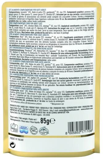 Features Pack 20 Schesir Tuna and Chicken with Shrimps