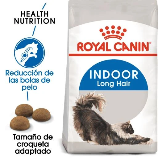 Royal Canin Indoor Long Hair Cat food with long hair who live exclusively at home. Promotes hair shine and skin health, it helps reduce hairballs and the smell of feces and is rich in protein. Long hair is beautiful but also requires a lot of care. Royal Canin Indoor feed Long Hair helps your indoor cat with daily hair care. The main problem of long-haired cats is the formation of hairballs due to the accumulation of ingested hairs. These balls cause vomiting in cats uncomfortable and affect their wellbeing and digestive system. This feed contains a blend psyllium fiber and which promotes digestive tract and thereby also the transit of hairs. The protein and fat content of this food is adapted to the level of activity of the cats living exclusively indoors in order to help control weight. All features at a glance: I think balanced for long-haired cats living at home Royal Canin Indoor Long Hair full recipe The special formula supports healthy long hair as well as your pussycat. Royal Canin Indoor Long Hair Crunchy and innovative Delicious croquettes and specially adapted increase acceptance of food. Hairballs combat: they can cause vomiting and loss of nutrients Highly digestible: psyllium and high digestibility proteins promote digestion and reduce the smell of feces Abundant proteins: to meet the needs of your cat Adapted fat content: suitable for indoor cats Balanced supply of minerals: supports urinary tract