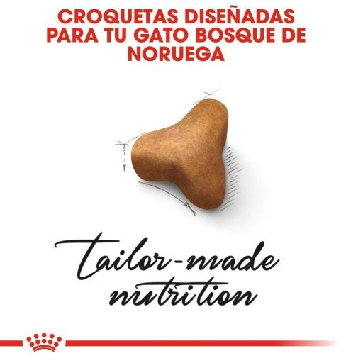Balanced and complete feed for adult cats – Specially for Norwegian Forest Cats – Over 12 months old Norwegian Forest Cat HEALTHY SKIN & COAT The Norwegian Forest Cats thick coat consists of a water-repellent uppercoat and a woolly undercoat. NORWEGIAN FOREST CAT helps support the skins barrier role thanks to an exclusive complex. Formula enriched with Omega 3 fatty acids and borage oil. IDEAL WEIGHT & JOINT HEALTH Helps maintain ideal weight, thus helping limit stress on bones and joints. HAIRBALL REDUCTION A combination of specific fibres helps stimulate instestinal transit and naturally limit hairball formation. Helps support a healthy urinary system SPECIAL NORWEGIAN JAW Onyx 11, a kibble specially designed for the Norwegian cat’s strong jaw to make it easier for her to grasp and encourage her to chew, thus helping reduce the rate of food intake.