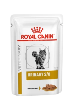 Meat and animal derivatives (including chicken 5%), cereals, oils and fats, derivatives of vegetable origin, minerals, eggs and egg derivatives, molluscs and crustaceans, various sugars. ADDITIVES (per kg): Nutritional additives: Vitamin D3: 300 IU, E1 (Iron): 3.5 mg, E2 (Iodine): 0.3 mg, E4 (Copper): 2 mg, E5 (Manganese): 1.1 mg, E6 (Zinc): 11 mg ANALYTICAL CONSTITUENTS: Protein: 8.2% – Fat content: 5.5% – Crude ash: 1.5% – Crude fibres: 1.7% – Moisture: 77% – Calcium: 0.16% – Phosphorus: 0.14% – Sodium: 0.13% – Magnesium: 0.016% – Potassium: 0.28% – Chloride: 0.26% – Sulphur: 0.15% – Taurine: 0.135% – Urine acidifying substances: calcium sulphate (0.2%), DL-methionine (0.07%). URINARY S/O with Chicken is a complete dietetic feed for cats. Its urine acidifying properties and its low level of magnesium make it suitable for dissolving struvite stones and reducing their recurrence. It is also formulated for the nutritional management of cats with lower urinary tract disease.