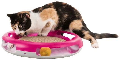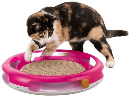 These Trixie products combine the cardboard scraper with toys so that your cat will have fun.