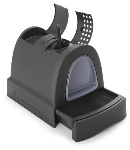 – Closed cat litter tray with activated carbon filter to prevent odors.