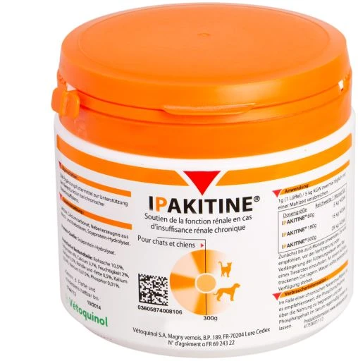 A low-phosphorus diet is recommended for dogs and cats with impaired kidney function. Ipakitine is a highly palatable kidney-protective phosphate binder. Combine Ipakitine with a low-phosphorus diet at the onset of renal-dysfunction signs. In animals who refuse a low-phosphorus diet, Ipakitine can be administered along with regular food.